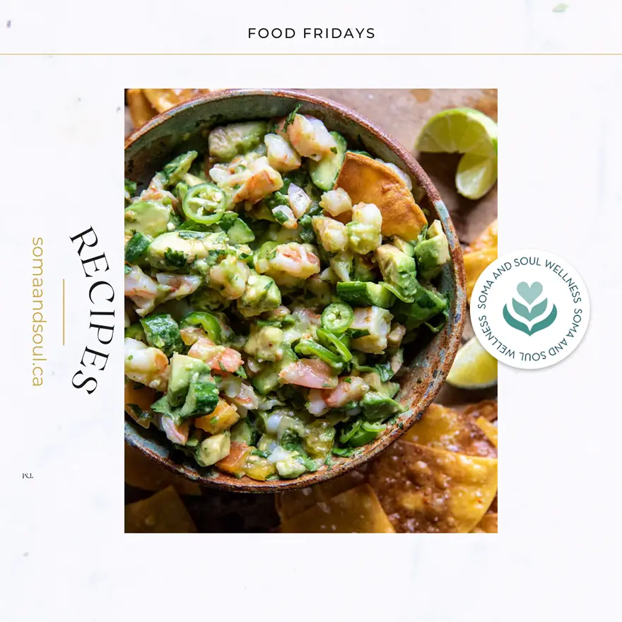 Did you know that on average, a 3-ounce (85-gram) serving of cooked shrimp provides about 20 grams of protein? AND it clocks in at just 84 calories. With added fiber and healthy fats from the avocado, and a dose of fresh veggies – this recipe is packed with everything your body needs to stay energized.