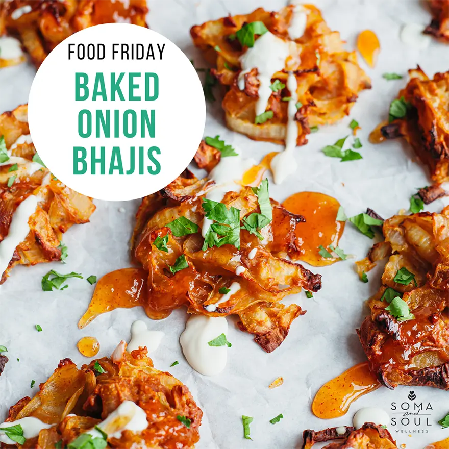 - Using a couple of spoons, place 2 tbsp of the mixture onto the baking tray and lightly flatten it down with the back of the spoon. Repeat until you have 12 bhajis on the tray. Bake for 30-40 minutes or until crispy and slightly charred around the edges.