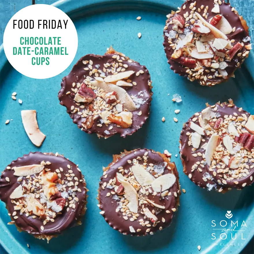 Melt chocolate and oil in a heatproof bowl in the microwave in 20-second increments, stirring in between, until smooth and glossy, about 1 minute total. Pour about 1½ tsp. melted chocolate into each liner (no need to be exact, you just want a thin layer). Top with a small scoop of nut mixture, pressing to spread out the chocolate a bit (you want every nut to be in contact with chocolate so it won’t fall off). Using 2 spoons, dollop about 1 Tbsp. date caramel into each, pressing to gently spread down and around. Top each cup with 1 tsp. melted chocolate, using the back of a spoon to spread it around and cover as much caramel and bare nuts as possible. Sprinkle with remaining nut mixture and sea salt.