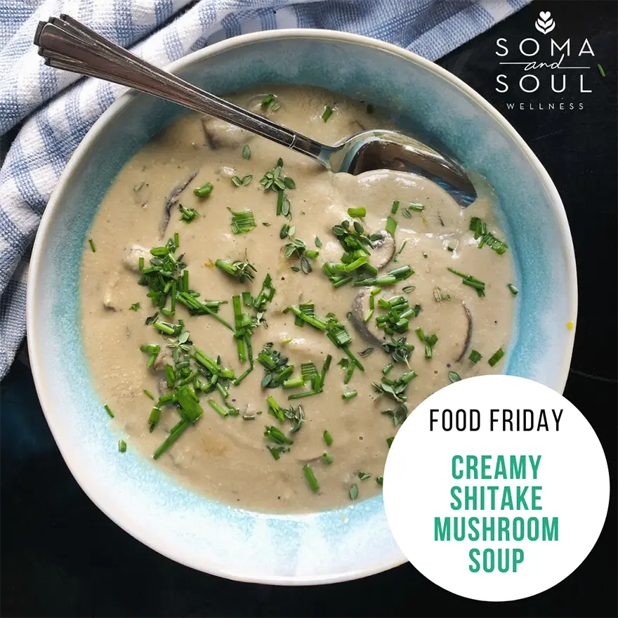 - Remove ⅓ of the sautéed mushroom mixture and place it in an upright blender. Also in the blender, add the drained cashews, miso, nutritional yeast, and 2 cups of the vegetable stock. Blend this mixture on high until completely smooth and creamy, about 30 seconds.