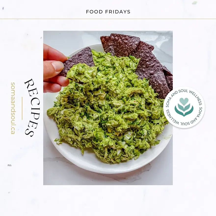 Packed with whole fruits and veggies, including cabbage, apples and cucumbers, this recipe is light but won’t leave you hungry. Packed with protein thanks to the shredded chicken breast and nutritional yeast, and full of healthy fats from nuts, avocado and olive oil, this salad will leave you satiated and tide over until you get home from your busy work day.