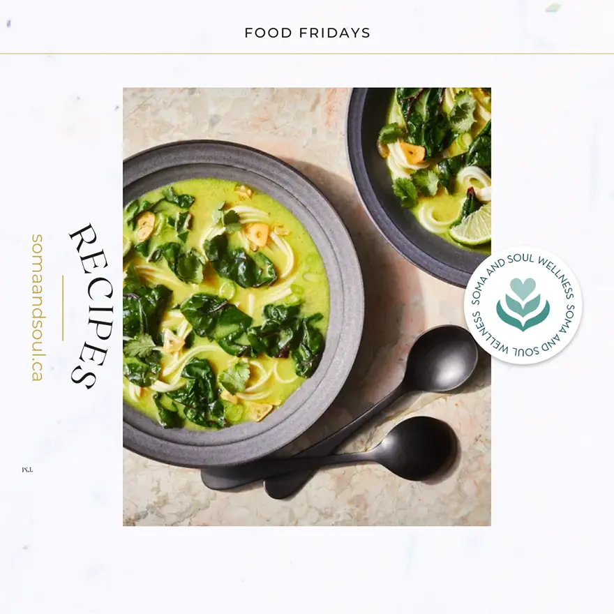 April showers bring May flowers…so they say. As we welcome Spring here in Ontario with what feels like never-ending rain, you can never go wrong with a cozy bowl of soup! Try out this Restorative Ginger and Turmeric Noodle Soup recipe.