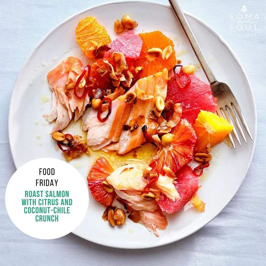 Roast Salmon With Citrus and Coconut-Chile Crunch