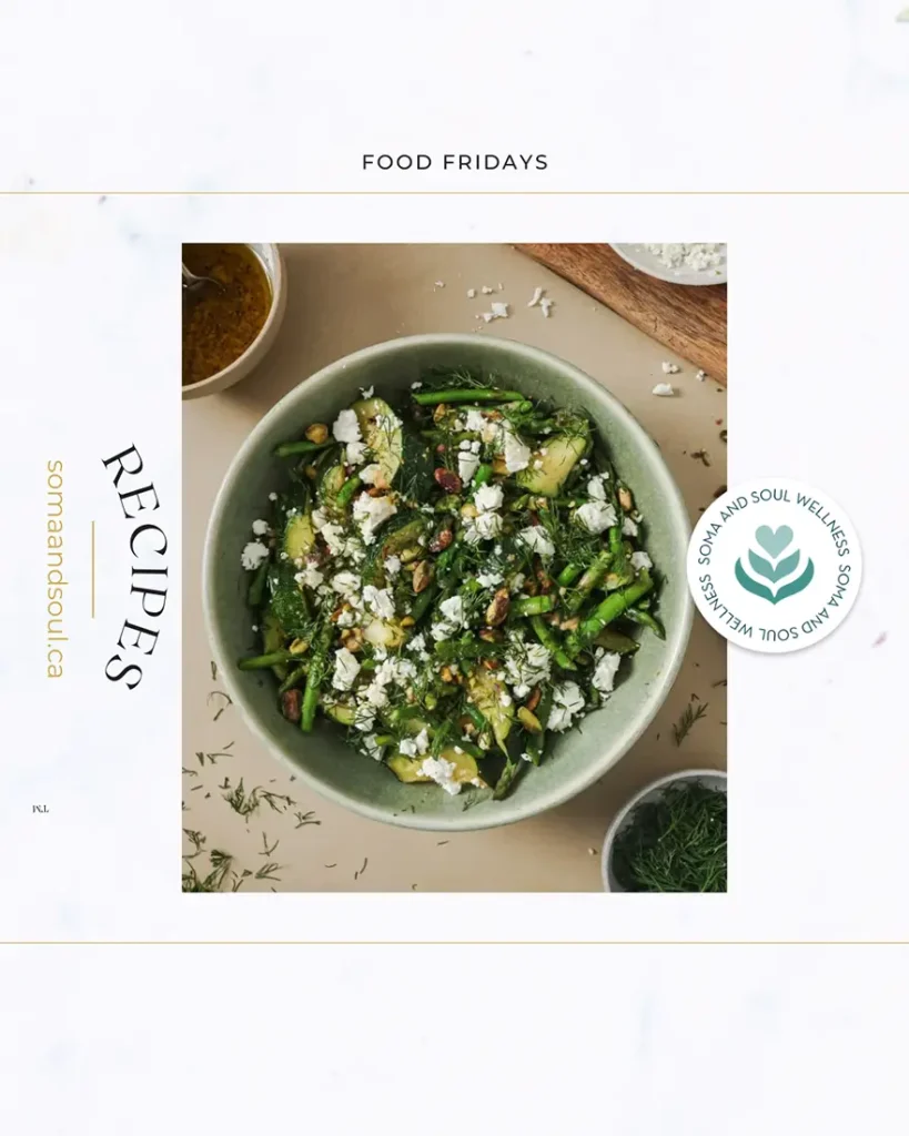It’s vibrant, fresh, and nutrient-dense, with a balance of fibre, healthy fats, and antioxidants to support hormone balance, gut health, and energy. Zucchini and asparagus are rich in prebiotic fibre and minerals like magnesium and folate, while the feta and pistachios add a hit of protein and healthy fat to keep you satisfied.
