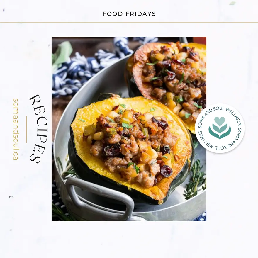 Acorn squash isn’t just a fall favourite, it’s a nutritional powerhouse too. Packed with antioxidants, fibre and vitamins, it’s the perfect way to embrace the season’s offerings. Out of all the squash varieties, acorn squash is arguably the easiest to make. Just cut in half and roast! And while it roasts, you can prepare the delicious, slightly sweet, protein-packed filling.