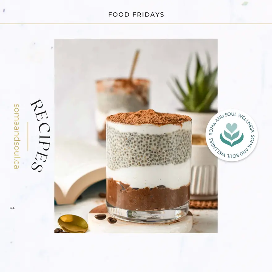- In glass mason jars, alternate chocolate chia pudding, plant-based yogurt, and vanilla chia seed pudding until you reach the top of the jars.