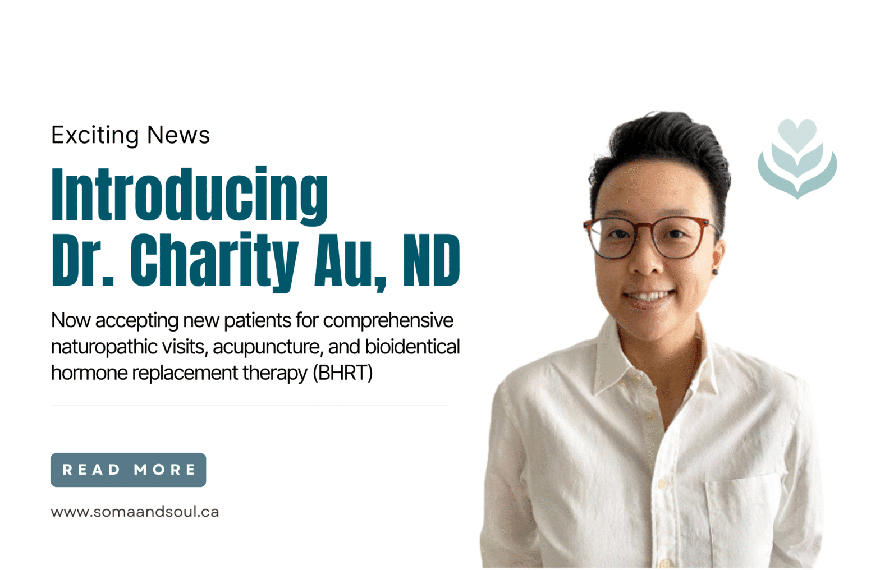 We’re delighted to share that Dr. Charity Au, ND, who many of you already know as our IV therapy provider, is expanding her care at Soma and Soul Wellness to include comprehensive naturopathic visits, acupuncture, and bioidentical hormone replacement therapy (BHRT).